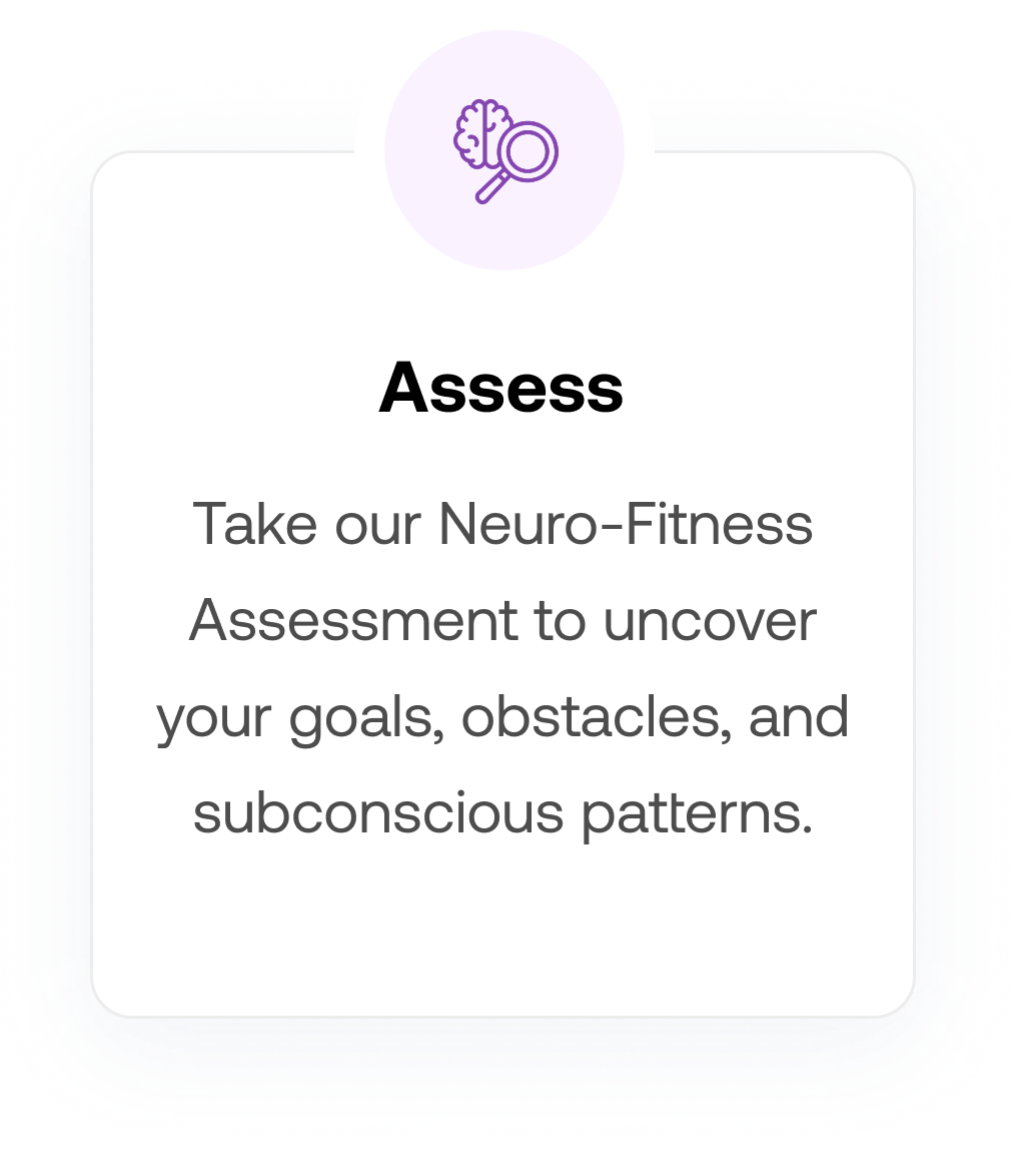Take our Neuro-Fitness Assessment to uncover your goals, obstacles, and subconscious patterns.