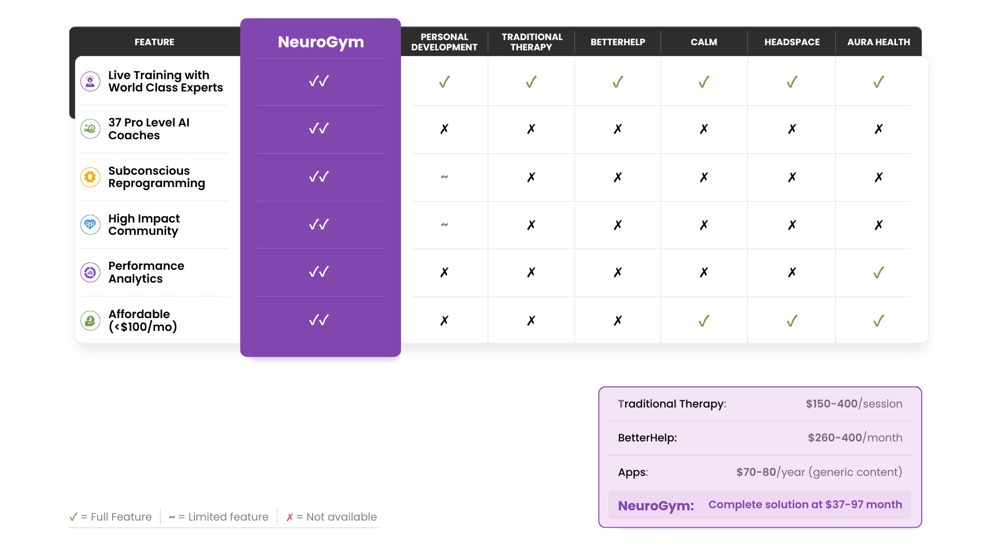 NeuroGym® is pioneering one of the world's first AI-powered Neuro-Fitness® platforms, a disruptive technology defining the future of affordable, personalized mental-fitness training and mindset transformation.